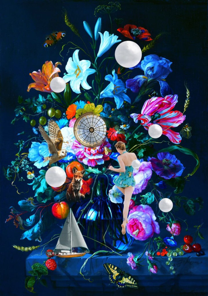 In these collages I find myself living different lives and can move through portals to other dimensions. Things I learn bit by bit in real life too. Especially through meditations, Matrix Reïmprinting EFT and lucid dreaming, I am training myself to manage these skills, which I find the most exciting thing in life. Everything can be experienced what you like, without AI, just with our own Consciousness everything is possible, which is so much more powerful than any computer or technology.
